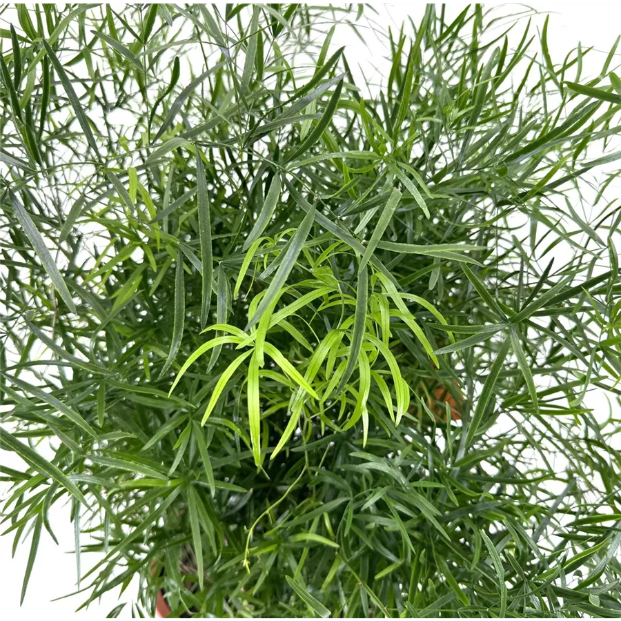 Die Blätter des Zier-Spargels sind mittelgrün, lanzettlich.