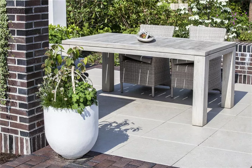 Weitere wichtige Kriterien sind die Wetter- und UV-Beständigkeit. Regen, Wind, Hitze und Kälte dürfen den robusten Tischen und Stühlen nichts anhaben – erst recht nicht, wenn sie den ganzen Winter über draußen bleiben müssen. Falls es keinen Überwinterungsplatz im Keller gibt, sollten sie wenigstens mit einer Schutzhülle abgedeckt werden. Wer eine platzsparende Variante benötigt, wählt stapelbare Stühle (sind schnell weggeräumt, wenn sie nicht gebraucht werden) oder Bänke.