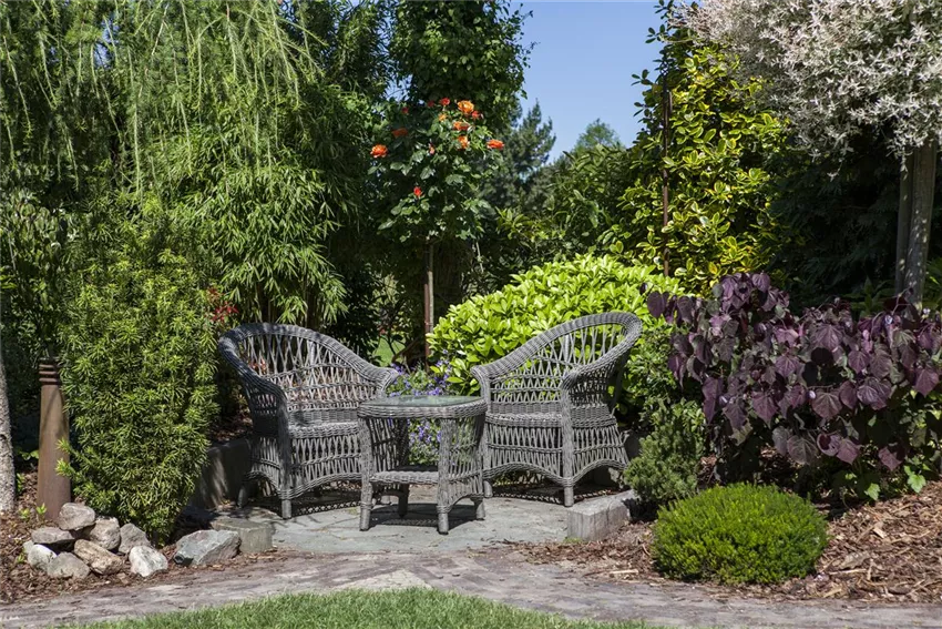 Fürs Wohlbefinden ist am Sitzplatz etwas "Rückendeckung" notwendig, denn der Mensch hat das Bedürfnis sich geschützt zu fühlen. Wählen Sie für Ihren Sitzplatz deshalb einen Strauch, eine Hecke, eine Mauer oder ein begrüntes Rankelement als Abgrenzung oder als Hintergrund. Gegebenenfalls ist ein weiterer Sichtschutz notwendig. Ganz flexibel sind Sie mit Paravents oder gespannten Stoffbahnen, die gerade bei einem mobilen Sitzplatz vor unerwünschten Blicken schützen.